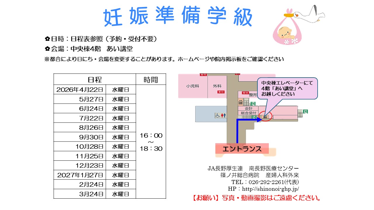 生殖補助医療(体外受精・顕微授精・凍結融解胚移植など)について知りたいとお考えの方や、治療について準備したい方を対象にした当院で開催している教室です。開催日程については下記の予定です(予約不要)。